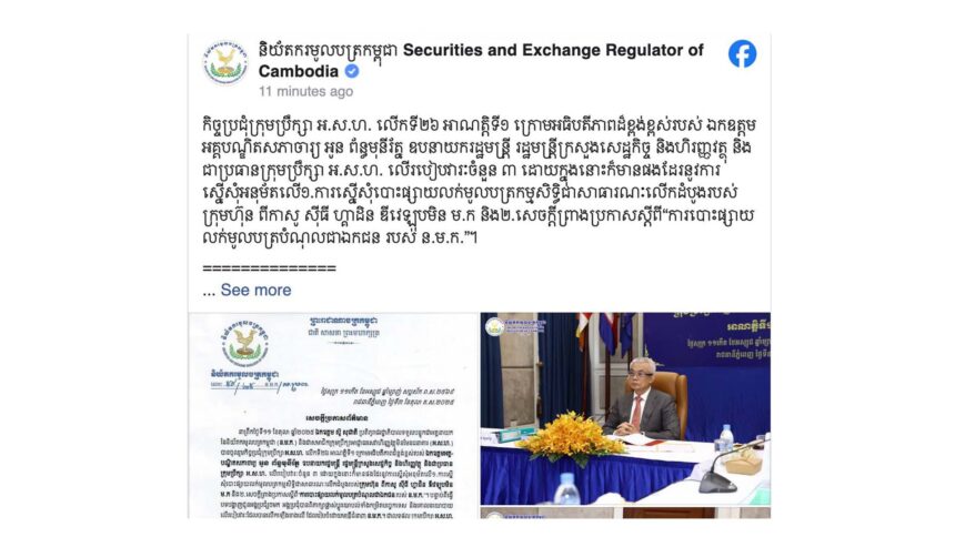 ក្រុមហ៊ុន ខេមបូឌា ស៊ីឃ្យួរឹធី ម.ក គឺជាក្រុមហ៊ុនធានាទិញមូលបត្រដែលទទួលបានអាជ្ញាបណ្ណពេញលេញដំបូងគេនៅក្នុងព្រះរាជាណាចក្រកម្ពុជា ដែលផ្តោតលើធនាគារវិនិយោគជាអាជីវកម្មចម្បងចាប់តាំងពីកំណែទម្រង់ និងការបើកផ្សារមូលបត្រមក។ ក្រុមហ៊ុនបានទទួលបានអាជ្ញាបណ្ណសំខាន់ៗក្នុងការប្រកបអាជីវកម្មក្នុង វិស័យមូលបត្រចេញដោយនិយ័តករមូលបត្រកម្ពុជា (ន.ម .ក)