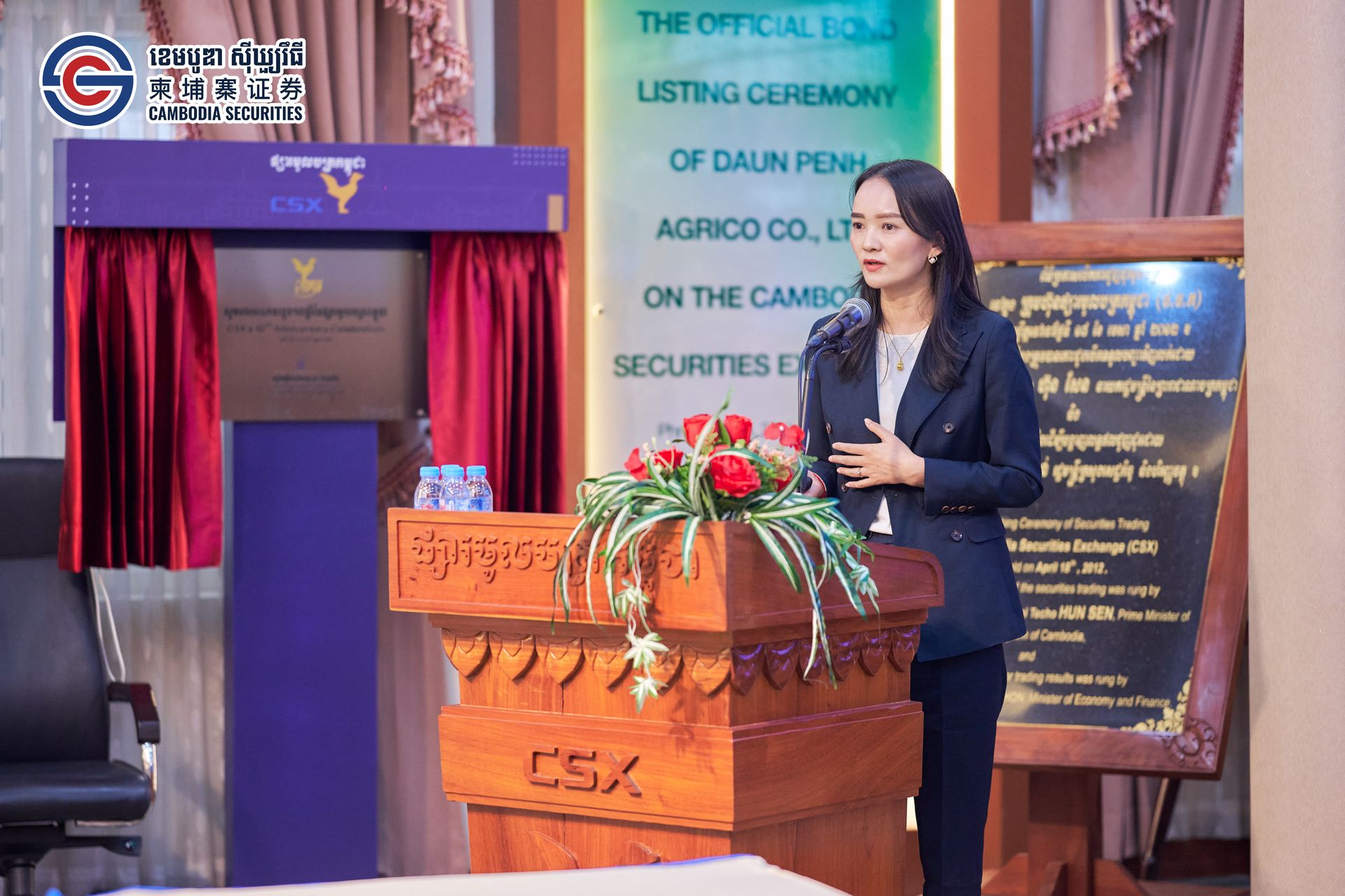 The Cambodian securities market is attended the ceremony and delivered an opening address young but full of potential,". He noted that the CSX will continue to refine listing regulations and information disclosure systems, actively guiding and supporting enterprises with growth potential and solid governance to enter the capital market and achieve standardized, sustainable growth through public listing.