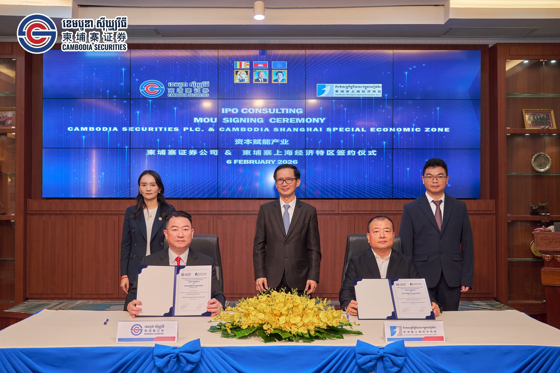 [Phnom Penh, February 6th 2026] On February 6th 2026 Cambodia Securities Plc. and the Cambodia-Shanghai Special Economic Zone officially convened the "Capital Empowering Industry—Comprehensive Strategic Cooperation Signing Ceremony" at the Cambodia Securities Exchange (CSX). Under the witness of H.E. Hong Sok Hour, Royal Government Delegate in Charge as CEO of the Cambodia Securities Exchange, both parties signed a comprehensive Strategic Memorandum of Understanding (MOU). The partnership will focus on a systematic collaboration across capital market services, pre-listing cultivation for enterprises, and financing support. This initiative aims to drive the standardization, transparency, and market-driven development of the SEZ and its resident enterprises, establishing a demonstration platform where capital markets catalyze industrial clustering and high-quality economic growth.