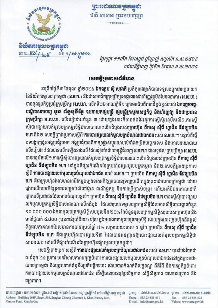 Phnom Penh, Cambodia – October 03, 2025 – Picasso City Garden Development Plc. (“PCG”) received approval on Listing Eligibility Review from Cambodia Securities Exchange (“CSX”)and on Initial Public Offering of Equity Securities from the Securities and Exchange Regulator of Cambodia (“SERC”) and to be listed on the CSX’s Growth Board. PCG will become the first company to list in Cambodia in 2025, trading under the ticker PCG.