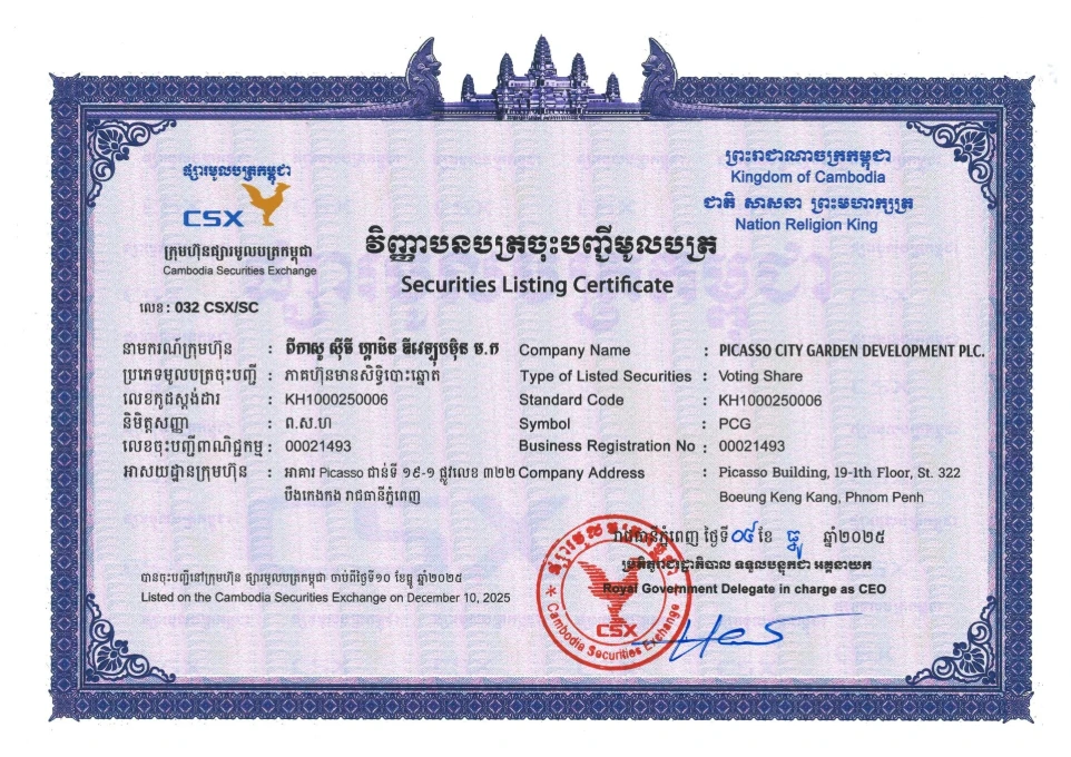 អ្នកអភិវឌ្ឍន៍អចលនទ្រព្យទី 1 ក្នុងឆ្នាំ 2025 នៅលើ ផ្សារមូលបត្រកម្ពុជា